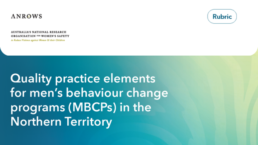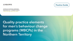 A recent ANROWS evaluation of the Northern Territory Men’s Behaviour Change Programs generated a new set of Quality Practice Elements (QPEs). Using research and practice knowledge, the QPEs focus on continuous improvement to enhance the effectiveness and safety of MBCPs.  Arranged into nine themes, with a total of 60 quality practice elements organised under those themes, they were designed to be useful for anyone delivering MBCPs.